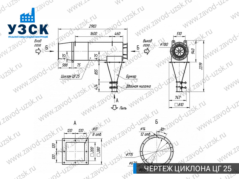 Монтаж циклона-искрогасителя ЦГ должен осуществляться непосредственно к горизонтальному вентиляционному каналу на входе в систему фильтрации и аспирации. Заказать изготовление по индивидуальному техзаданию или купить готовый циклон-искрогаситель ЦГ на заводе УЗСК в Нефтеюганске можно, оставив заявку прямо на сайте или позвонив по указанному телефону, уточнив все детали касательно продажи оборудования.