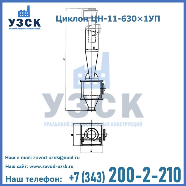Уральский Завод Стальных Конструкций в Нефтеюганске производит и продает надежное, эффективное и производительное оборудование, имеющее длительную гарантию и большой эксплуатационный ресурс. УЗСК также предлагает циклоны из нержавеющей стали высокого качества. По желанию заказчика толщина стали для циклона и бункера может быть увеличена. Заказать и купить циклоны ЦН-11 высокого качества и по доступной цене можно через наш сайт или по указанному в разделе «Контакты» телефону.