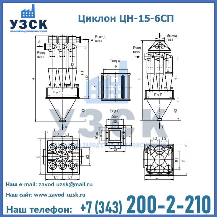 Завод «УЗСК» в Нефтеюганске предлагает большой выбор циклонов ЦН-15-600×6СП и прочих устройств, полностью укомплектованных и готовых к эксплуатации. Мы гарантируем соответствие оборудования всем требованиям ГОСТ и ТУ, износостойкость и высокую производительность предлагаемого оборудования. Уральский Завод Стальных Конструкций изготавливает и продает надежное, эффективное и производительное оборудование, имеющее длительную гарантию и большой эксплуатационный ресурс. Если требуется изготовить циклон нестандартных размеров, то такой вариант выполнения заказа тоже предусмотрен, так как предприятие имеет собственные производственные площади и надежных поставщиков. На все поставляемое или производимое оборудование имеются чертежи и прочая техническая документация. Заказать и купить циклоны или прочее оборудование высокого качества и по доступной цене можно через наш сайт или по указанному в разделе «Контакты» телефону.
