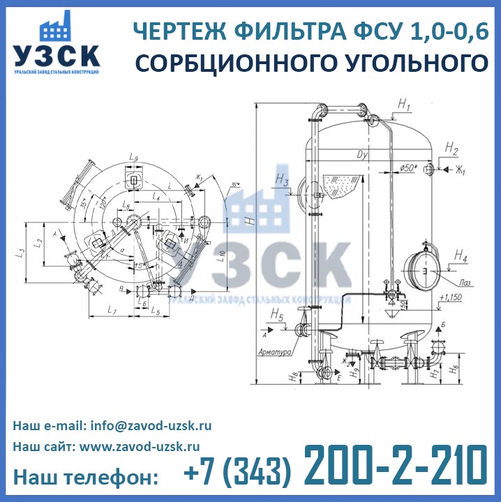 Наш завод (Уральский завод стальных конструкций) является производителем угольных фильтров, сам осуществляет изготовление и реализацию выпускаемой продукции. Приобретая фильтры ФСУ-1.0-0.6 в Нефтеюганске от производителя, Вы приобретаете оборудование без наценок всевозможных посредников, а также значительно экономите свое время. Фильтры ФСУ1.0-0.6 завода УЗСК – это гарантия качества, кратчайшие сроки изготовления и цена, которая Вам понравится.