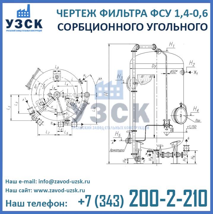Если вы ищете фильтры ФСУ-1,4-0,6 в Нефтеюганске от изготовителя, то Вы на правильном пути! Уральский завод стальных конструкций – непосредственный производитель сорбционных фильтров ФСУ, предлагающий самые выгодные цены на ФСУ-1.4-0.6 в Нефтеюганске. По окончании процесса производства угольные фильтры проходят гидравлические испытания пробным давлением 0,9 МПа на аттестованном гидростенде, находящимся в собственности завода УЗСК. Мы гарантируем высокое качество выпускаемой продукции, и в этом уже убедились ведущие предприятия промышленного сектора России и стран ЕАЭС (см. раздел «Наши клиенты»).